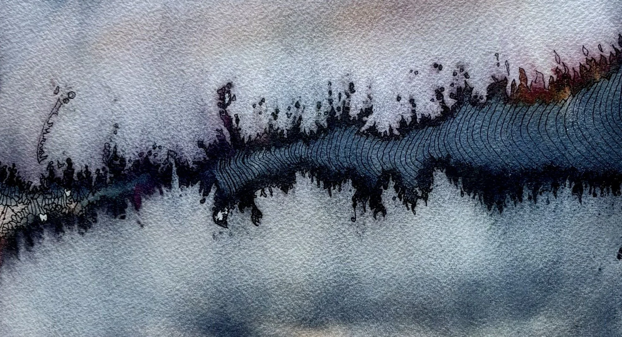 I paint with watercolours and enhance with ink, charcoals and soft pastels. Currently I’m working with saturating and piling pigments in the flow of the water.